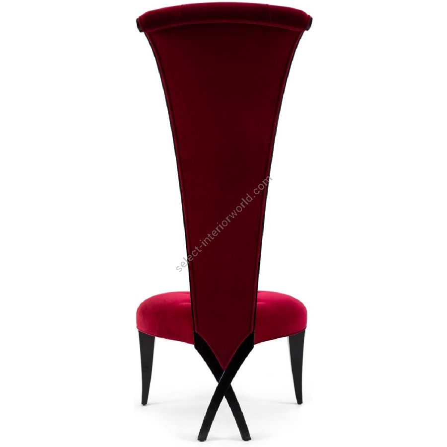 This tall, stunning upholstered piece, bears claim to Christopher's signature style, creating the unexpected, in this case with a tight corset waistline, and patented Chris-cross legs.