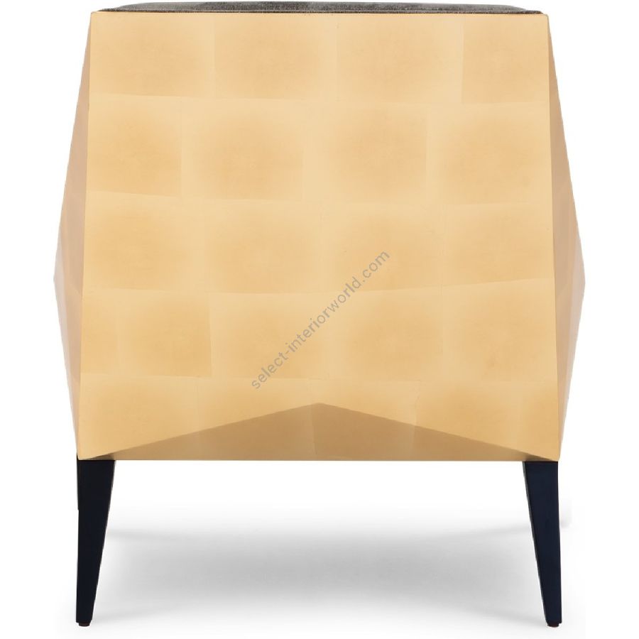 The sides and back of this elegant occasional chair offer a surprise in the form of a beautiful faceted geometric form, expertly hand-carved from certified mahogany. A true delight!