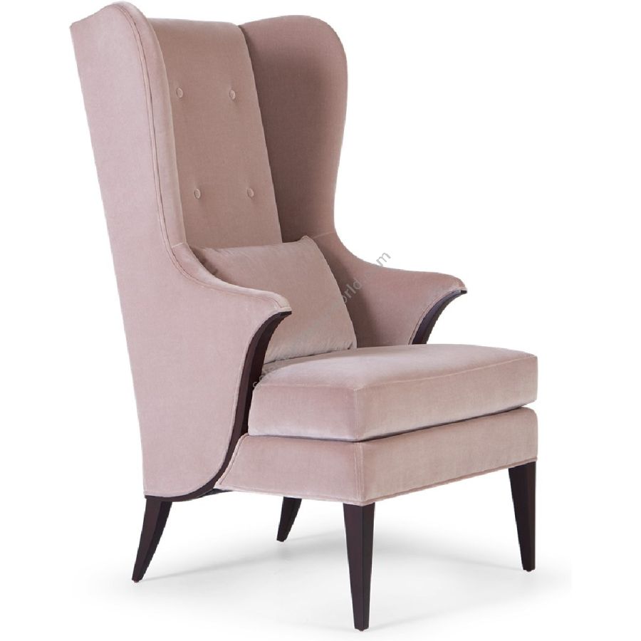 A sumptuously elegant wing chair with contemporary buttoning detail and sweeping arm rests. Equally wonderful for occasional or dinning chair settings. A triumph of design! Also available in a lower arm version 30-0151.