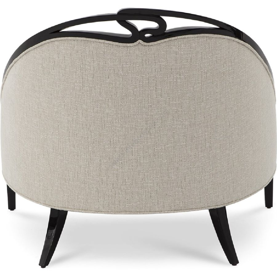 Fashioned with an interlaced swirl of exquisite carving, this unique barrel back occasional chair is designed with comfort and exceptional style in mind.