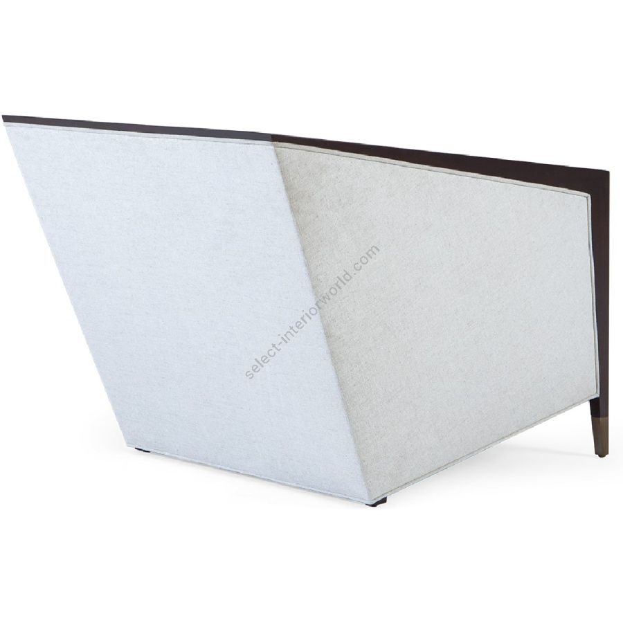With contemporary flair, this geometrically inspired occasion chair features trapezoid sides framed by hand carved mahogany and an angular upholstered seat and base, exquisitely complimented with metal finish tipped feet.