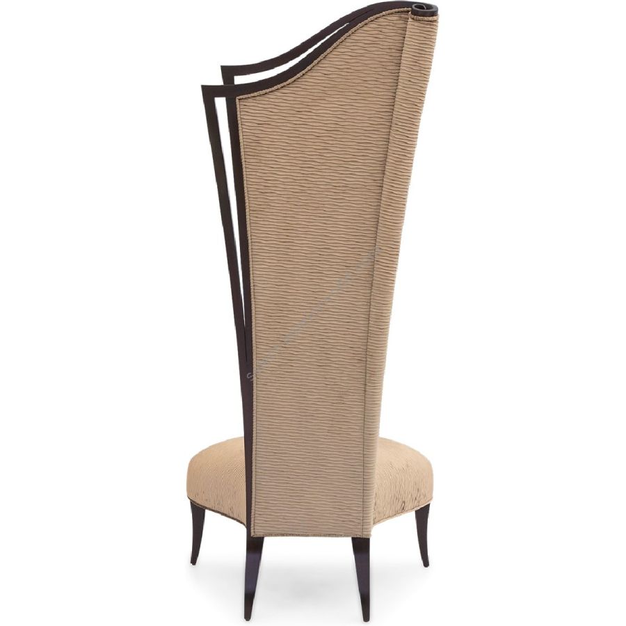 Add a touch of grandeur with this left or right asymmetrical accent chair, with a double curved edge hand-carved from solid mahogany. Also available in reverse (60-0230).