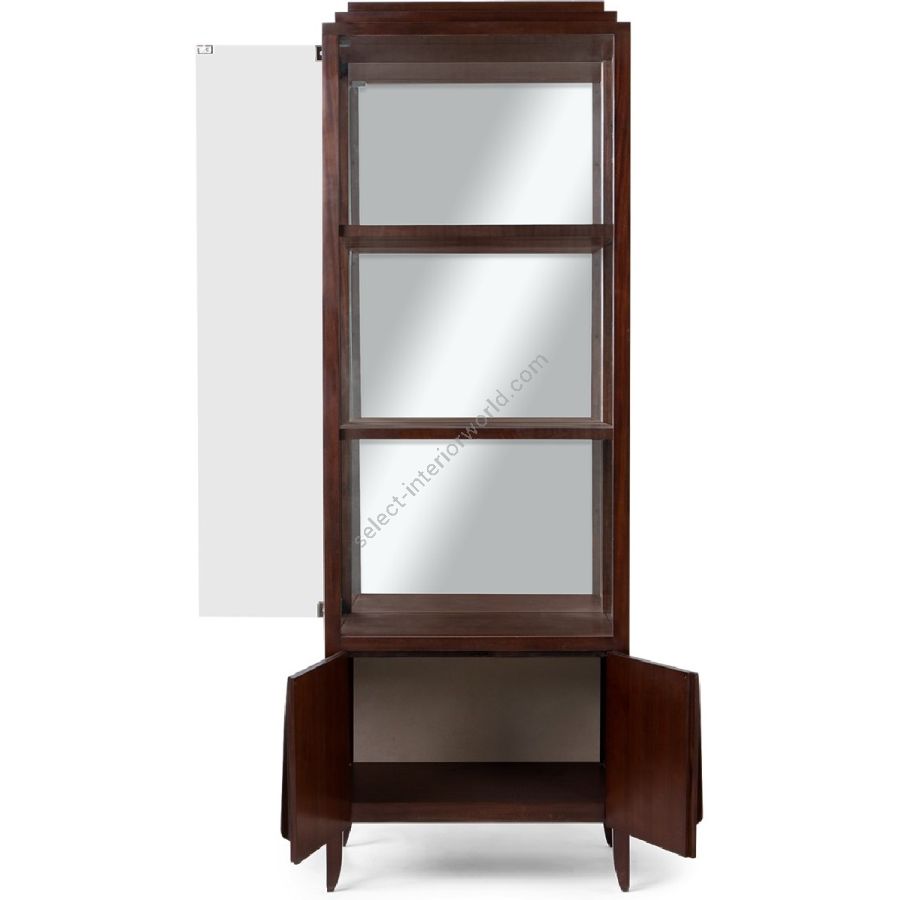 Supreme elegance is epitomized in this tall vitrine, featuring a stepped top, four-sided glass display with side-hinged access, three shelves and a double-doored lower cabinet with beautiful hand carved signature scrollwork handles. Also available as a bookcase or display case (88-0035).