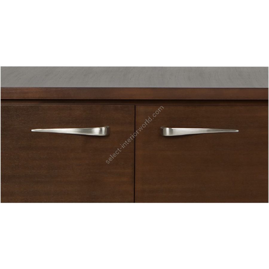 Magnificent double-sided cabinet, with handles derived from a rare 1950s Bentley seen by Christopher on the streets of London's Mayfair. Features 4-drawers and two wing doors with removable shelving. The opposite side features central doors with removable glass display shelving. Ideal for dividing a dining and living space. Available in two sizes.