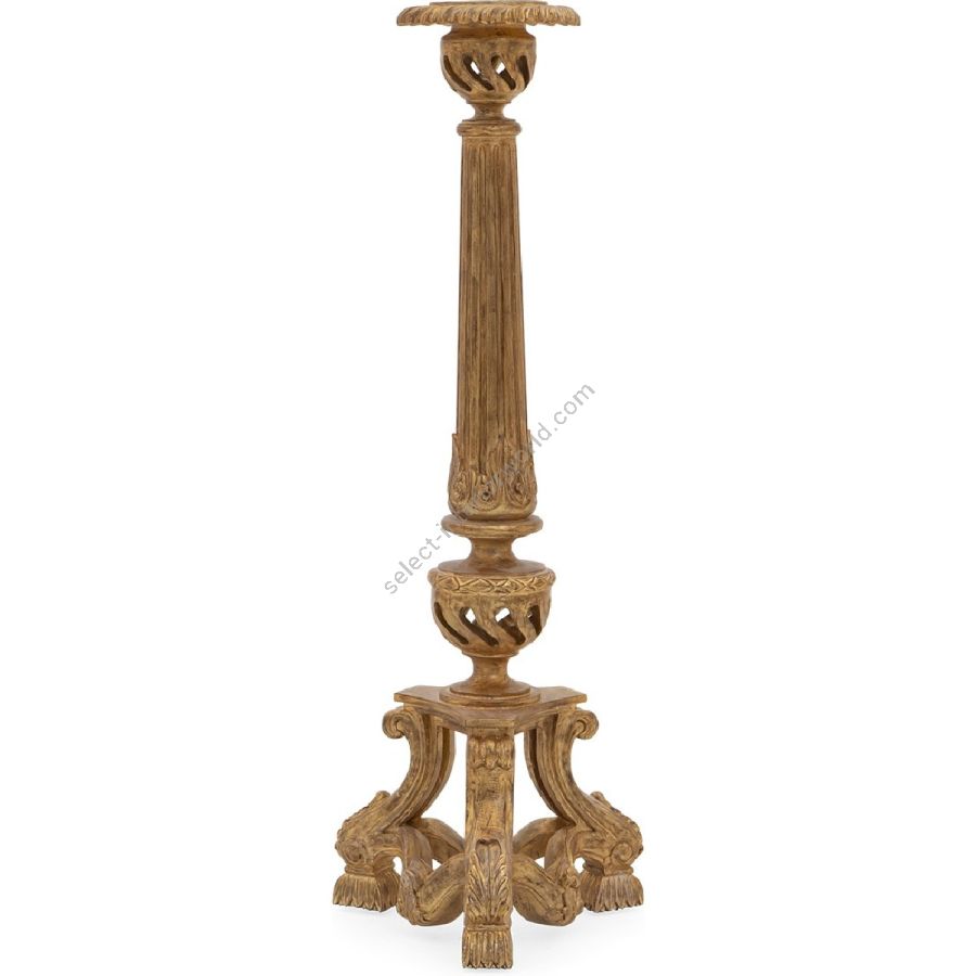 Grand tripod candlestick with magnificent hand carved fluting, turning and cut-out design. Delivered pre-drilled for optional customer's own electrification.