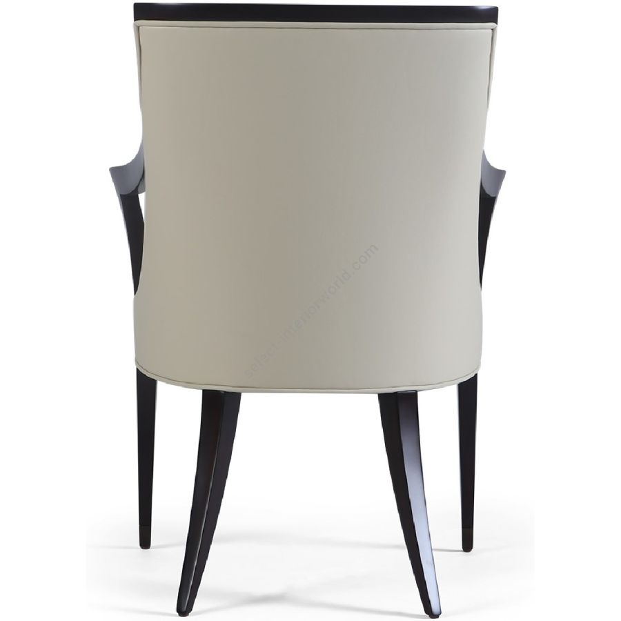 This supremely elegant dining chair features a squared back, sweeping cantilevered arms and metal finish tipped legs. A harmonious marriage of Art Deco styling and total comfort.