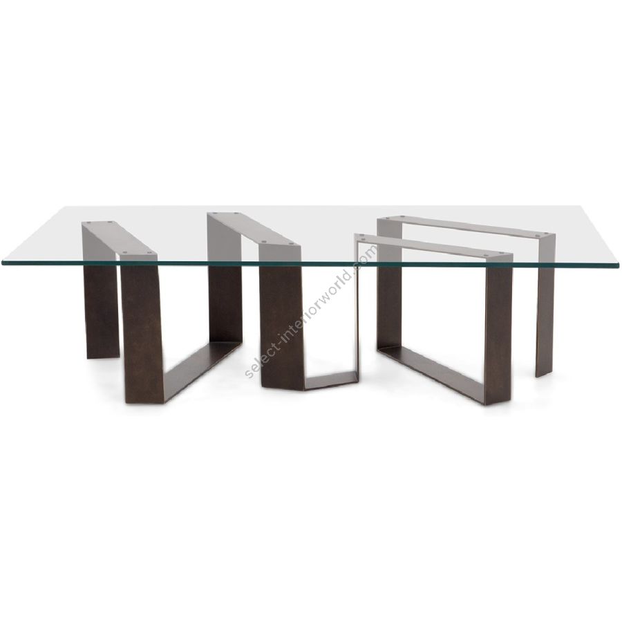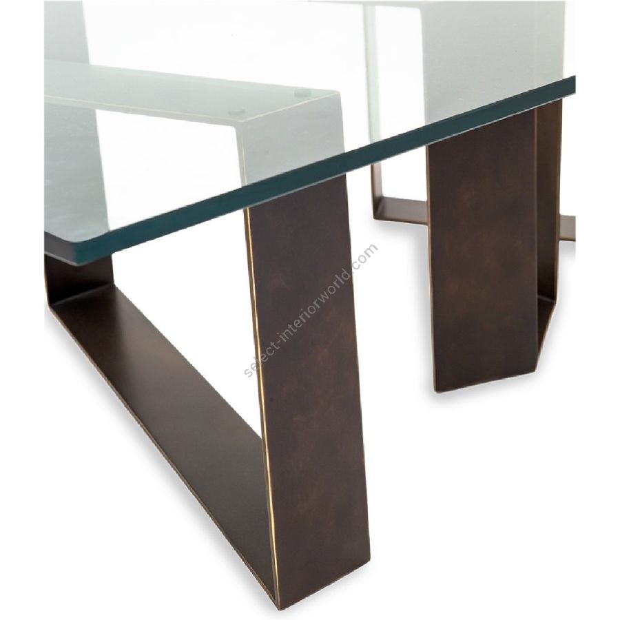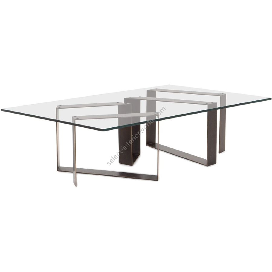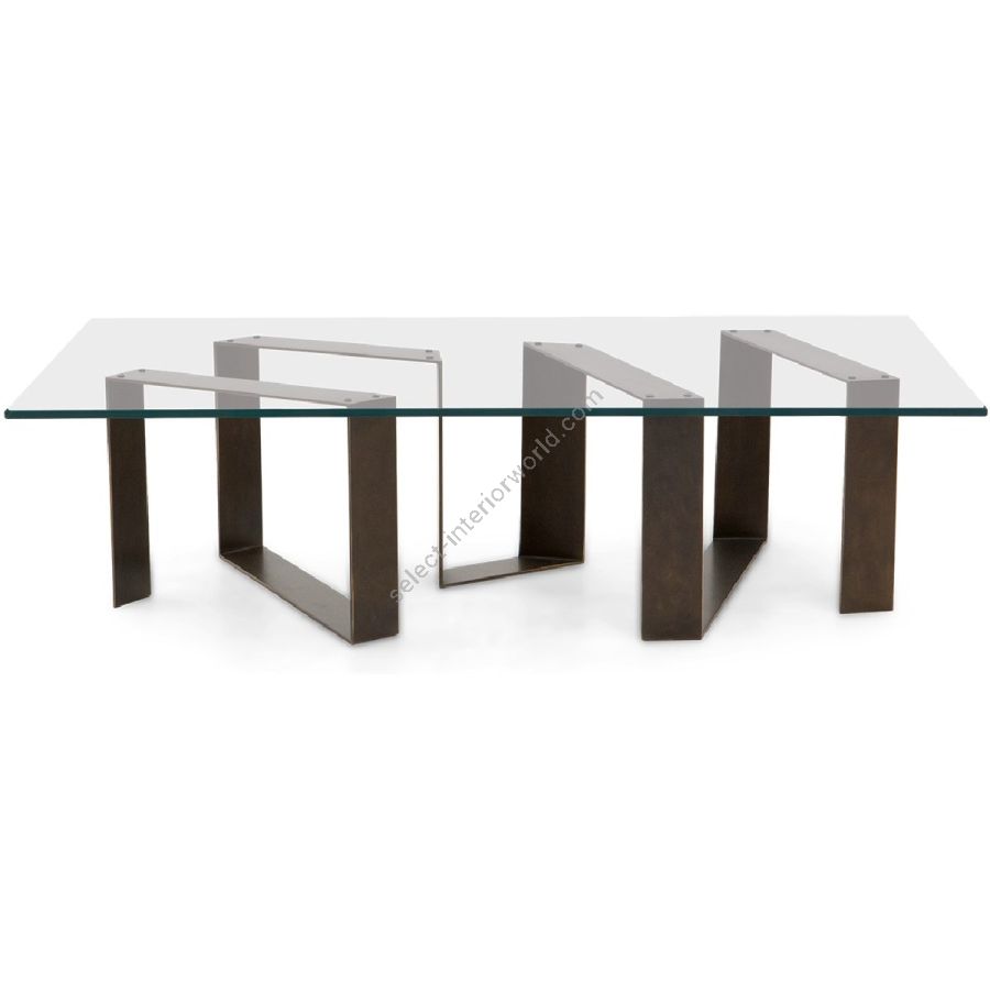 Forged Iron base. Toughened tempered clear glass top. Multiple Finishing Options. For residential use only. Commercial use is classified as Special Order Design (SOD), and alternative materials may be required. Contact us for details.