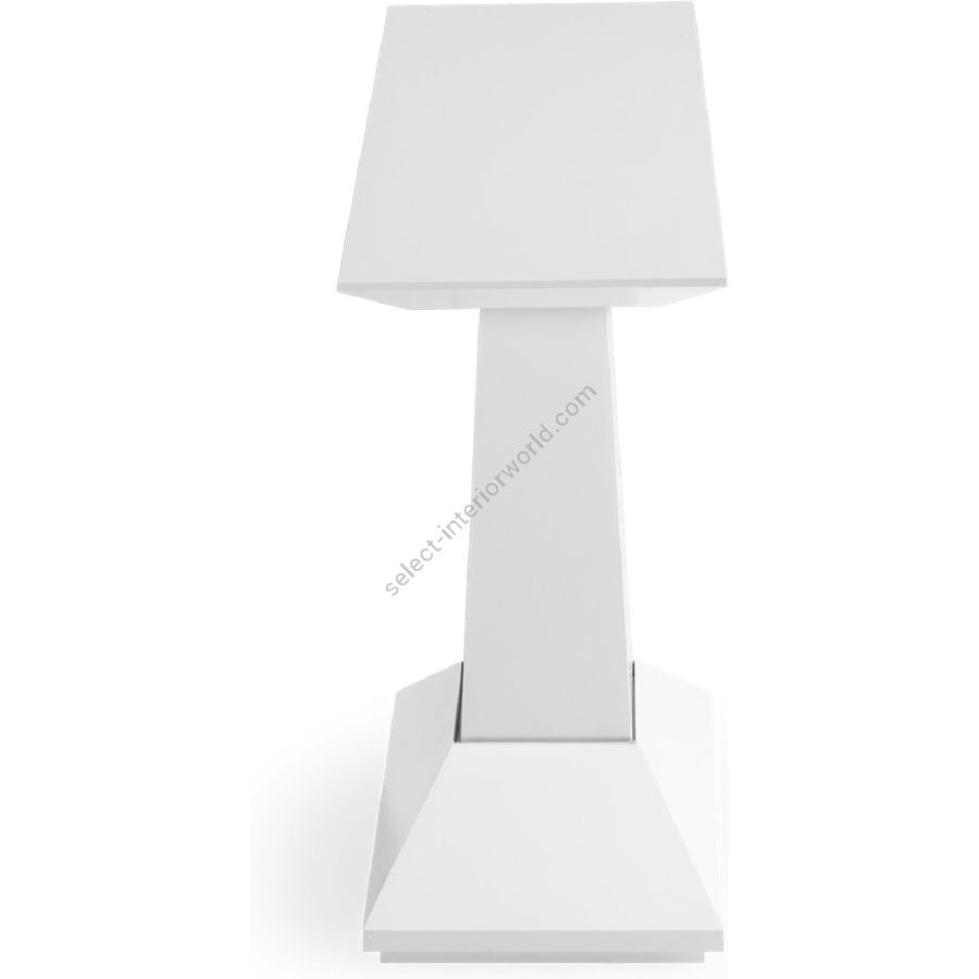 With classical elegance, this sleek console table is hand carved from solid wood, and features a single central column on a tapering base, with a rectangular beveled tabletop.