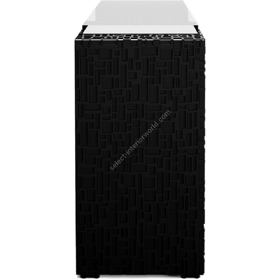 Hand-Carved. Solid Mahogany and engineered wood construction. Single ultra-suede lined drawer with easy glide. Selection of remarkable finishes are available. For residential use only. Commercial use is classified as Special Order Design (SOD), and alternative materials may be required. Contact us for details.