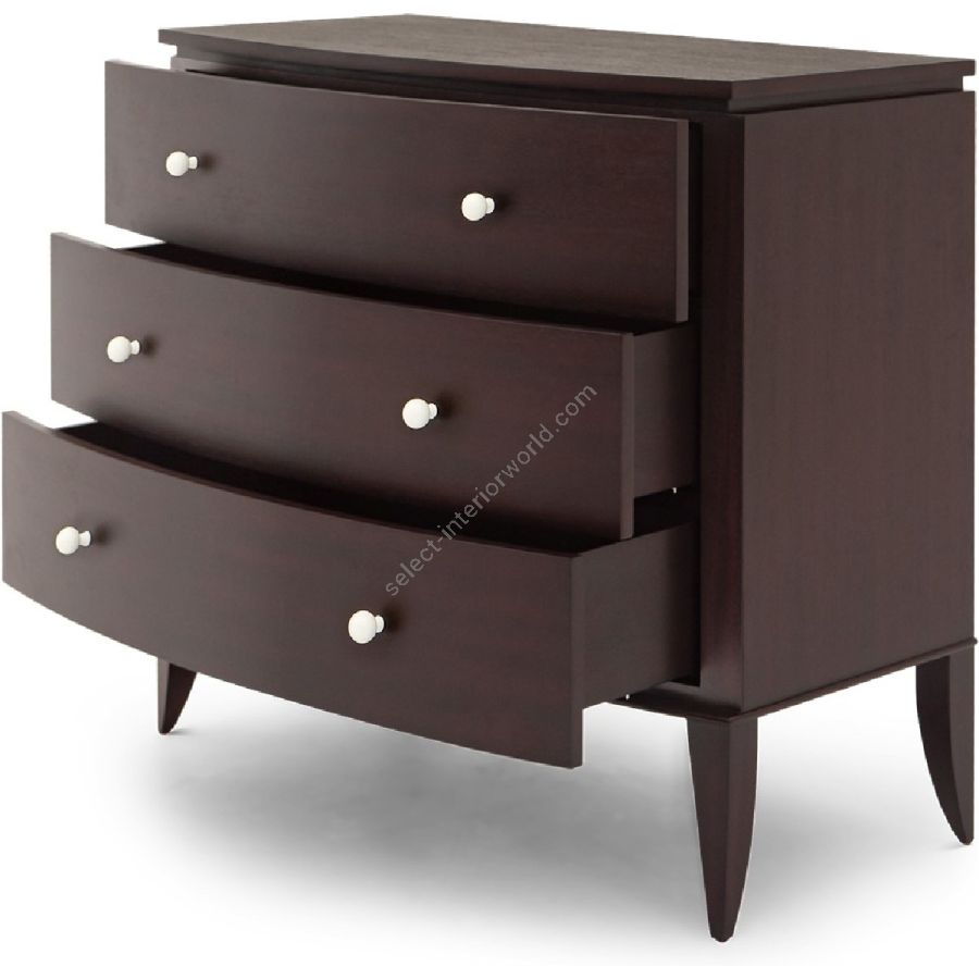 A timeless bow front chest-of-drawers with tapered legs that support the piece with grace and delicate ivoire knobs. The indented edge, which separates the top from the base, adds a fine detail.