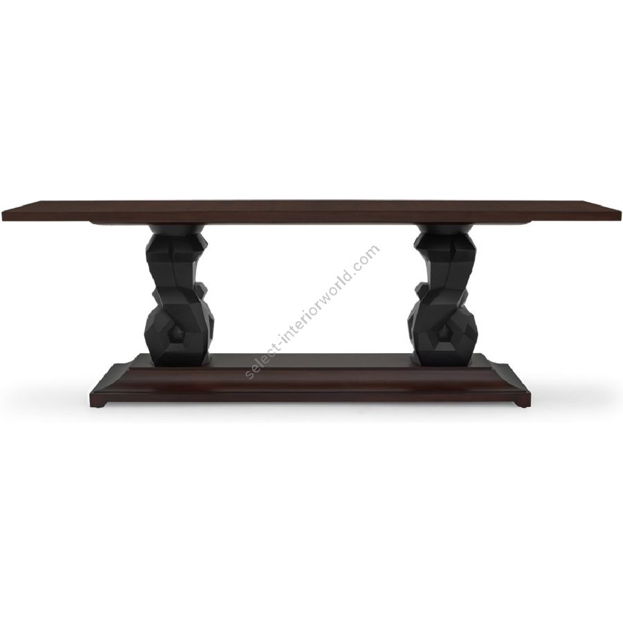 Hand-sculpted polyhedron mahogany supports, form this imposing Console table.