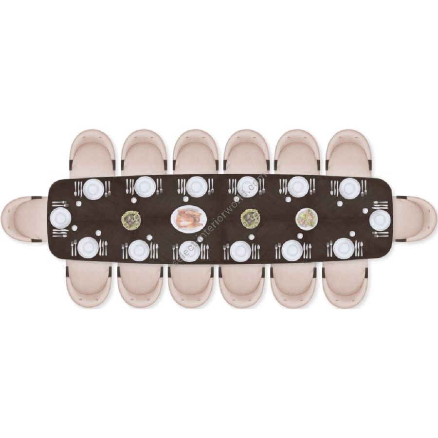 Certified Mahogany hardwood. Veneered Mahogany top. Two piece section table top for easy building access. 12-14 Seater Table. Selection of remarkable finishes are available. For residential use only. Commercial use is classified as Special Order Design (SOD), and alternative materials may be required. Contact us for details.