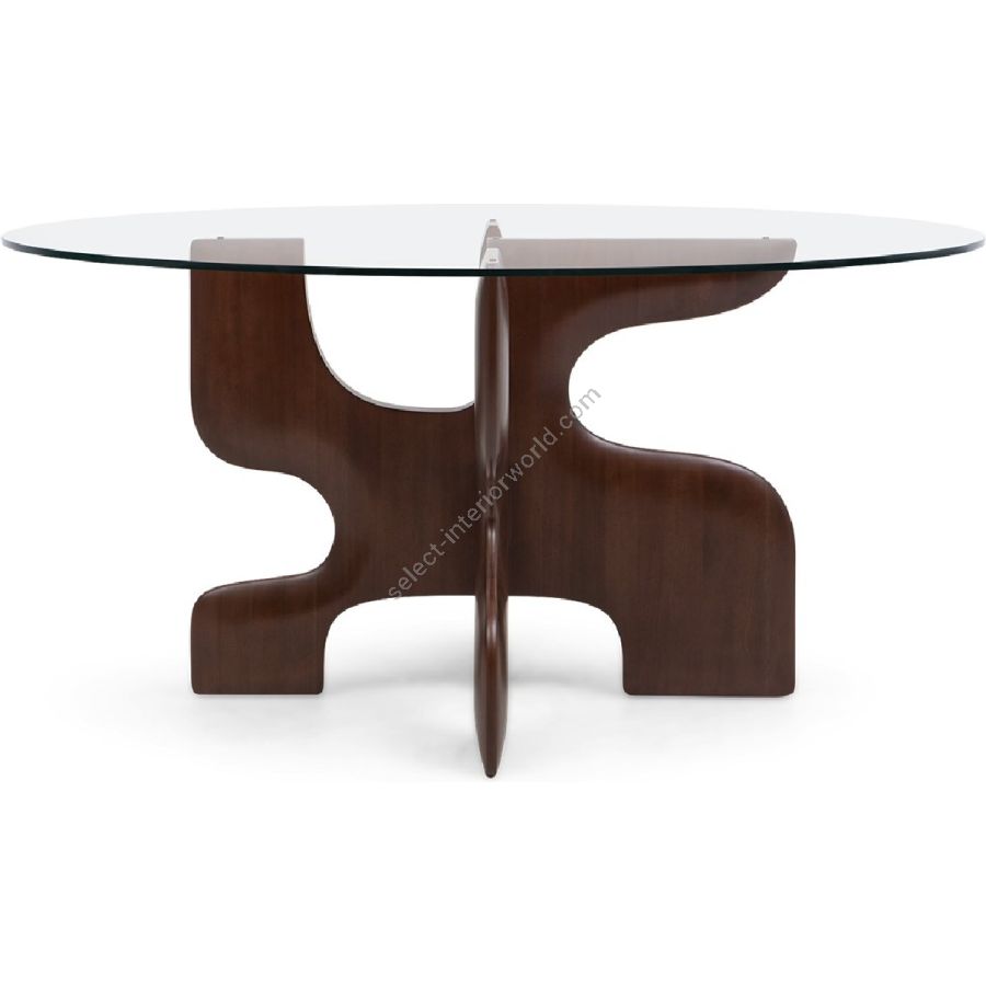 Certified Mahogany base. Toughened tempered clear glass top. 4-6 Seater Table. Selection of remarkable finishes are available. For residential use only. Commercial use is classified as Special Order Design (SOD), and alternative materials may be required. Contact us for details.