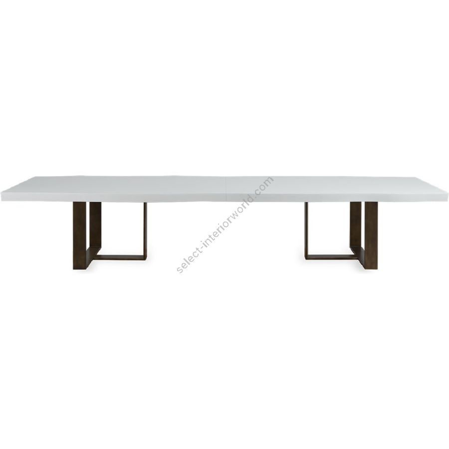 This highly impressive dining table, mimics the sawn plank of an oak tree with natural uneven edges. The base consists of two bronzed steel supports.