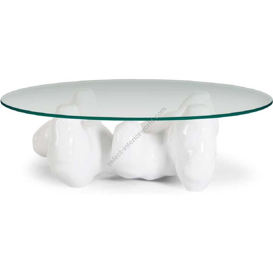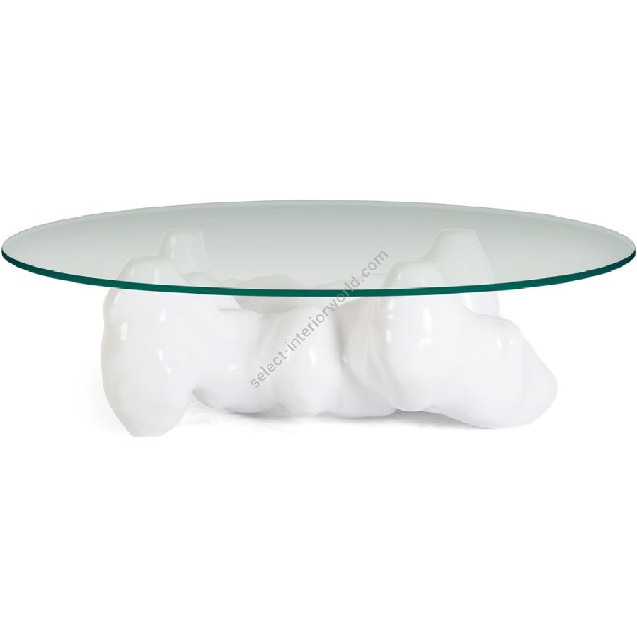 An organic, sculptural resin base inspired by the naturalist sculptures of Rodin is topped with round tempered glass to spectacular effect in this truly unique coffee table.