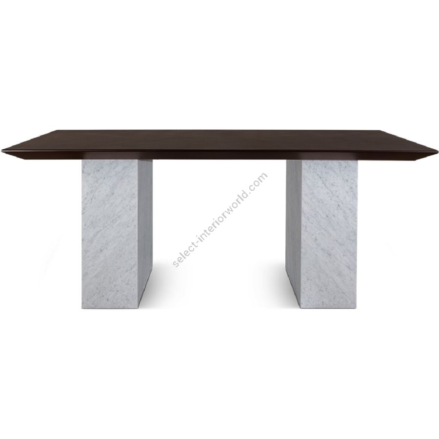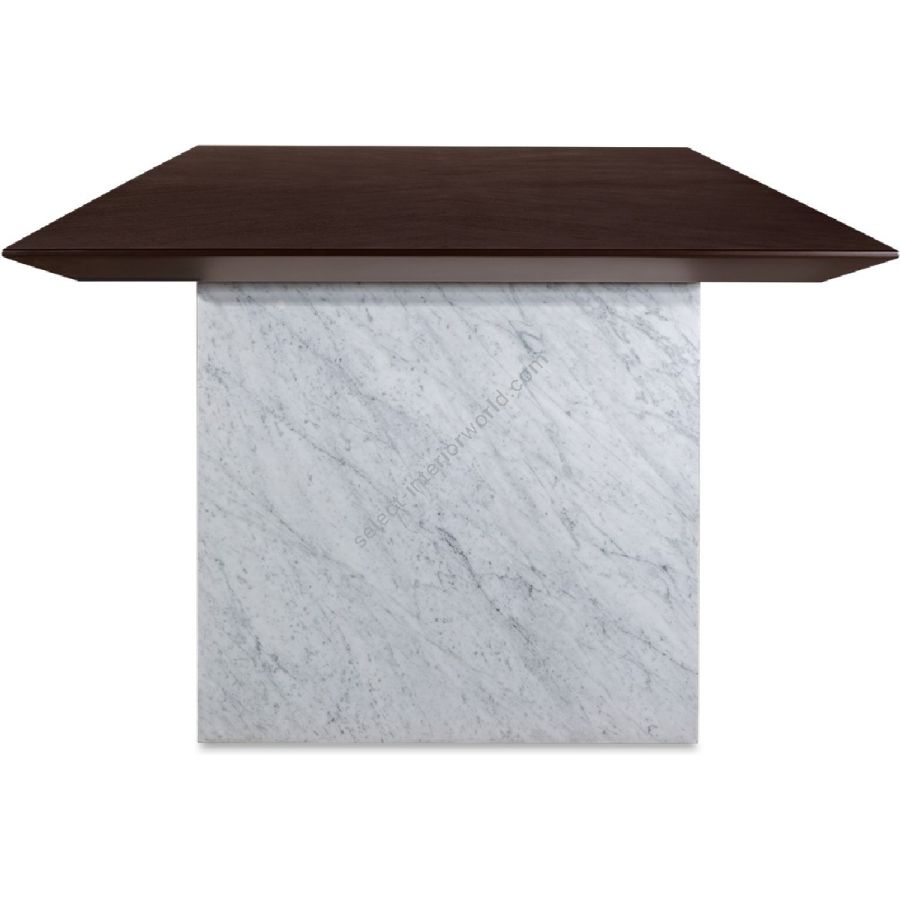 Bring elegance with edge to any dining setting. With smooth slabs of white Carrara marble as bases and a handmade rectangular wood top, this spectacular dining table is a real showstopper!