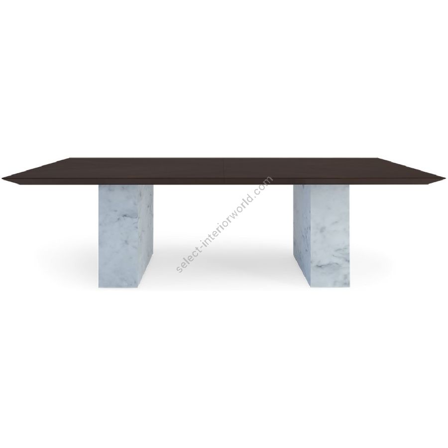 Bring elegance with edge to any dining setting. With smooth slabs of white Carrara marble as bases and a handmade rectangular wood top, this spectacular dining table is a real showstopper!