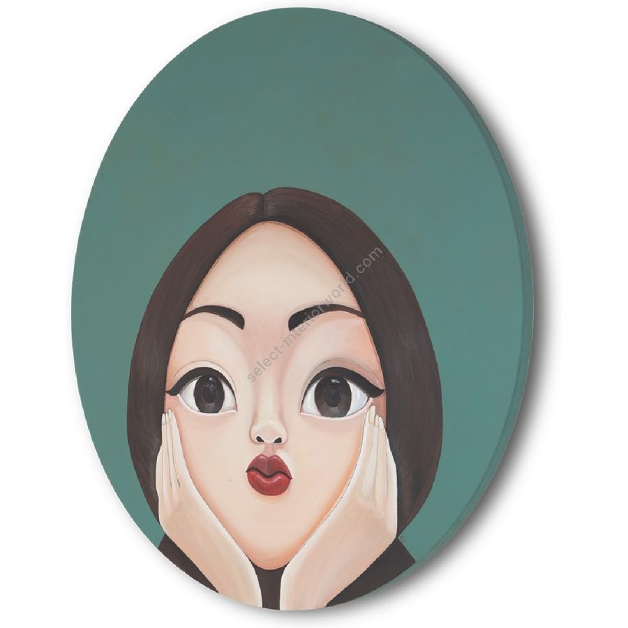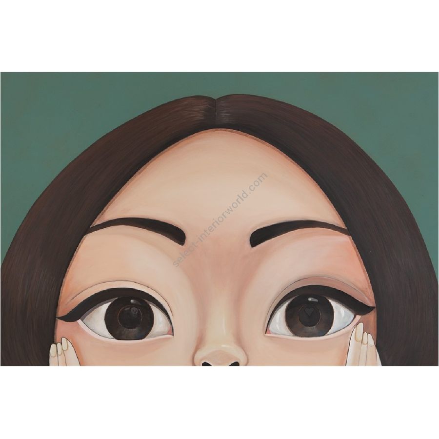 Inspired by late 19th century manga cartooning, this charming acrylic painting is on canvas and depicts a young girl with characteristic wide-eyed innocence, on a chalky green background. A charming addition.
