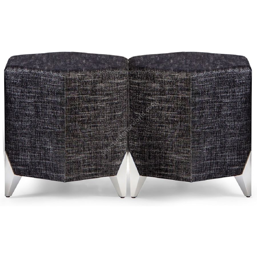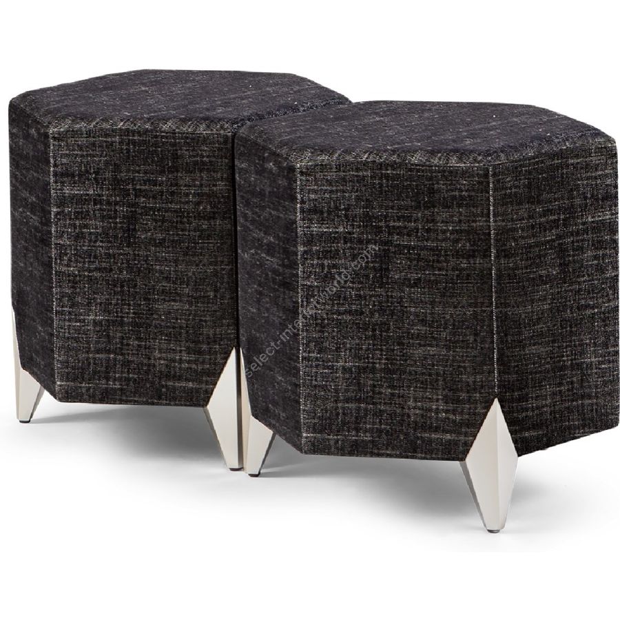 These delightful stools feature a hexagonal upholstered seat on the signature CG diamond hand carved feet. Sold as a set of 2, they can be combined with further sets to make a longer or wider seat.