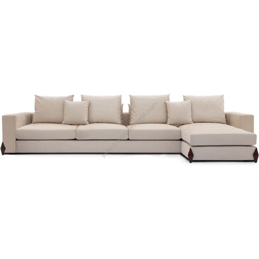 Named after the Italian master of Modernism, designer, architect, artist and publisher Gio Ponti, this L-shaped sectional with a 3-seater sofa and left hand chaise forms part of a collection of sofas and sectional sofas. Featuring straight lines and hand-carved diamond detailing on the legs, the contemporary look is softened by the supreme comfort of CG upholstery.