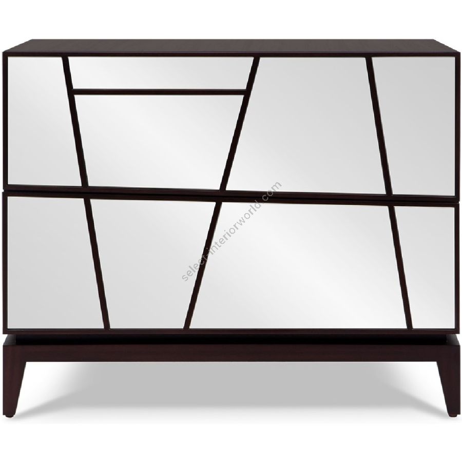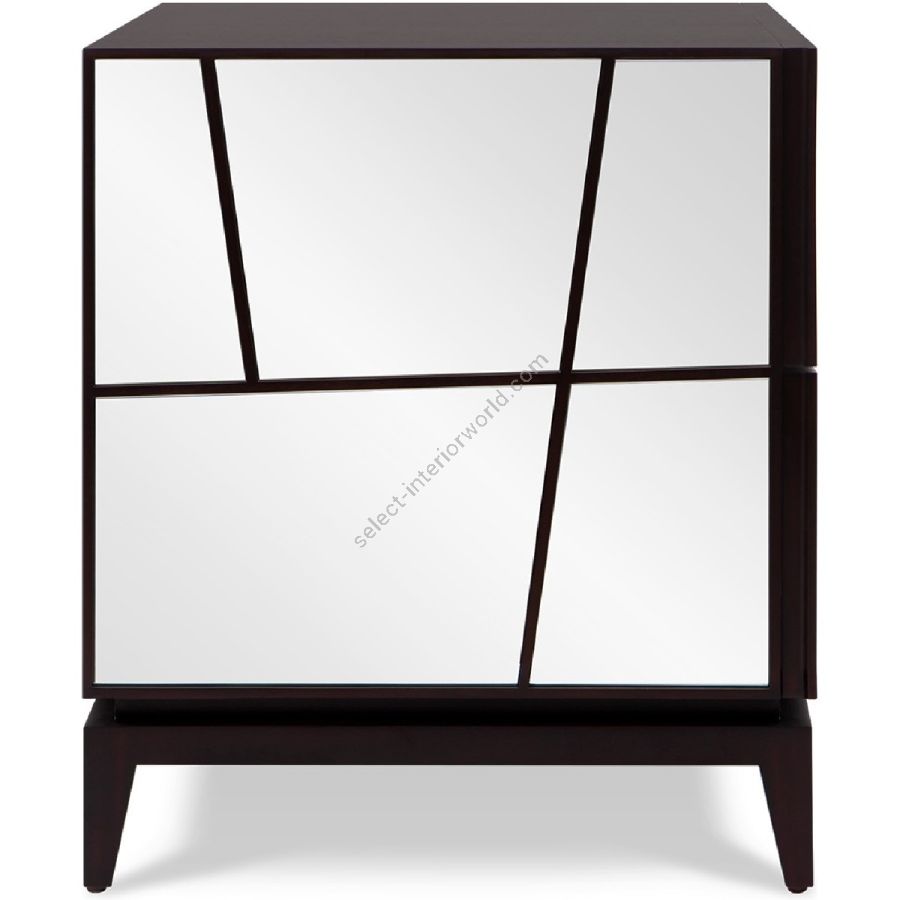 Named after the famous contemporary French architect, a striking nightstand with two drawers, hand carved in wood on an elegant wood base, and clad in geometric shaped mirror panes.