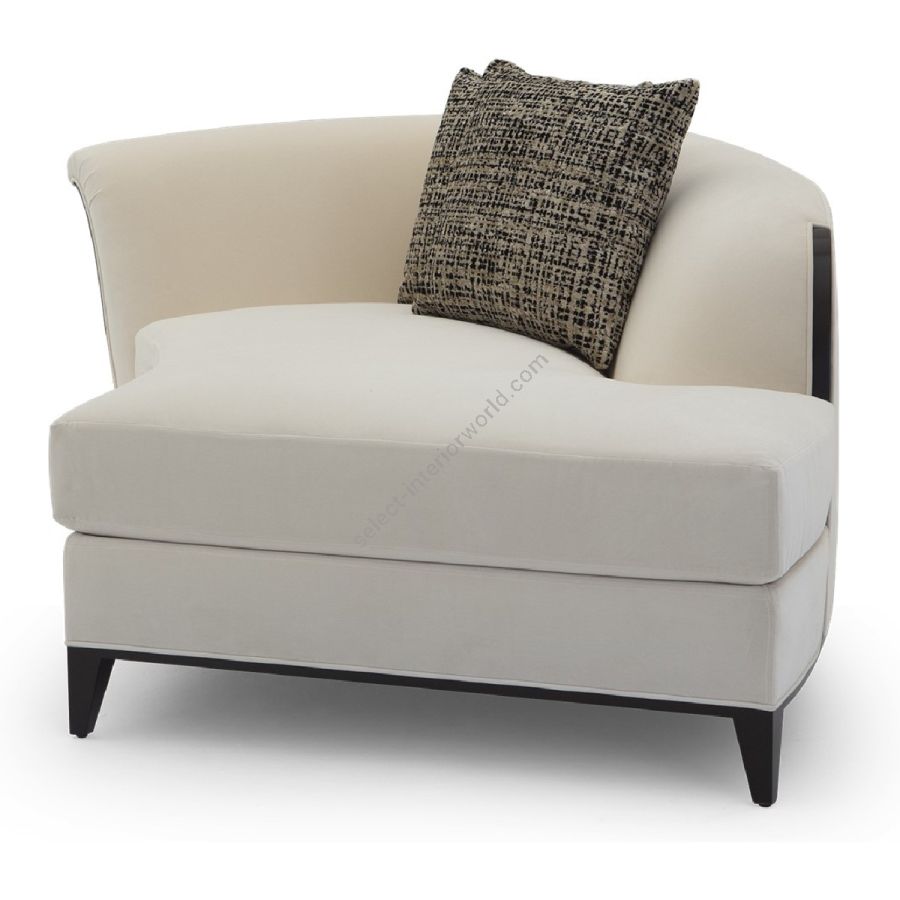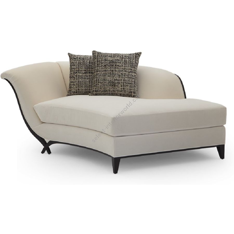 In an unusual sweeping trapezium shape, this is a stunning chaise that combines beauty with comfort. A gently curving back is complemented by a hand-carved frame and the signature Chris-cross legs. Also available in a right hand version (60-0578).