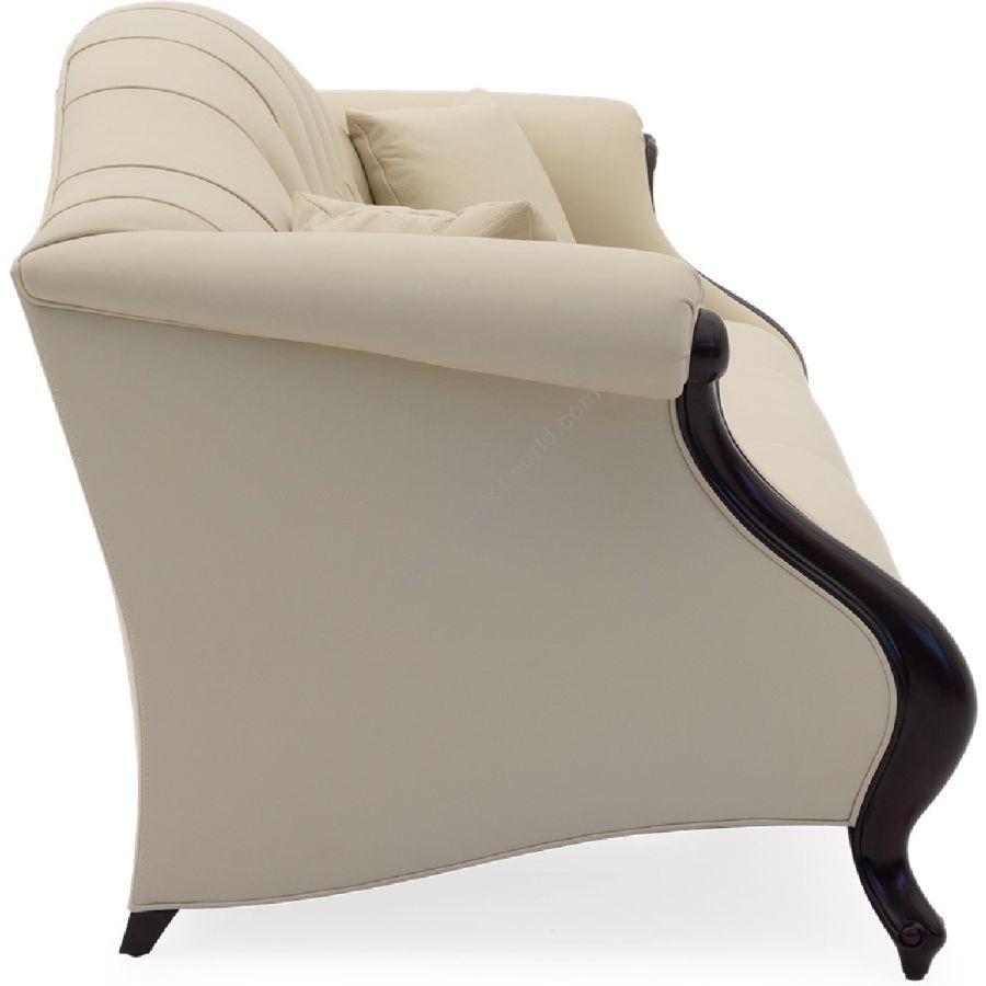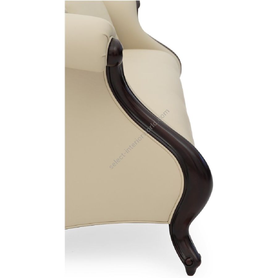 Doweled mortise and tenon frame in solid Mahogany from certified source. Hand-Carved details. Eight-way hand tied spring base, with pocket coil seat cushions encased in high-resilient fill and feathered down jacket. Feathered down throw pillows mixed with PolyFiber for added support. Diamond shaped tufting in a buttoned formation. Available in a selection of finishes. For residential use only. Commercial use is classified as Special Order Design (SOD), and alternative materials may be required. Contact us for details.