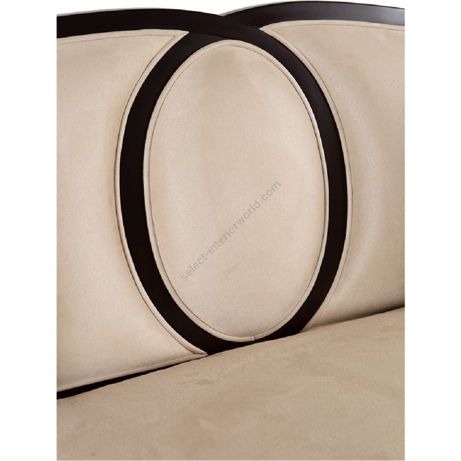 This elegant sofa, with a central oval upholstered feature in solid hand-carved mahogany within the ‘sweetheart’ shaped back, brings a fresh look to classic and contemporary interiors.