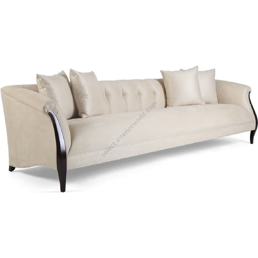 Doweled mortise and tenon frame in solid Mahogany from certified source. Hand-Carved details. Eight-way hand tied spring base, with pocket coil seat cushions encased in high-resilient fill and feathered down jacket. Feathered down throw pillows mixed with PolyFiber for added support. Single row buttoned tufting oozing a modern elegance. Available in a selection of finishes. For residential use only. Commercial use is classified as Special Order Design (SOD), and alternative materials may be required. Contact us for details.