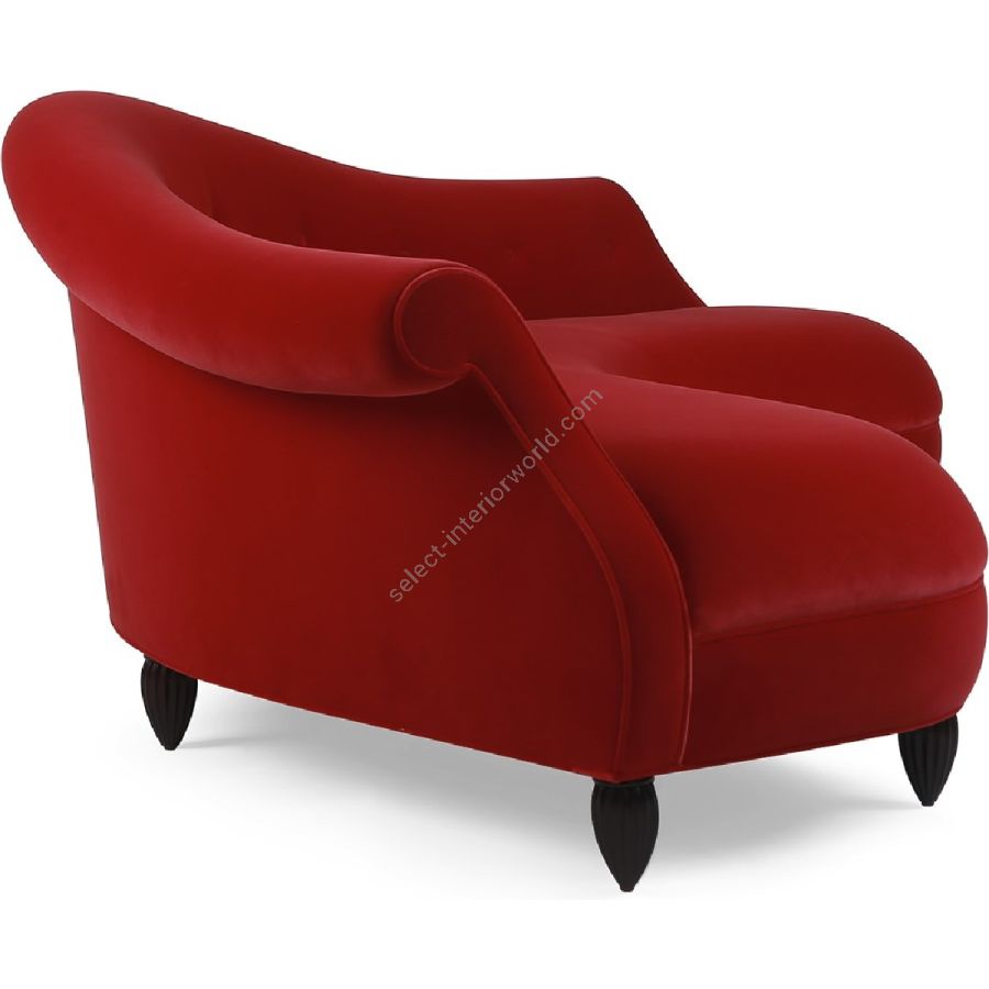 Doweled mortise and tenon frame in solid Mahogany from certified source. Mahogany legs. Eight-way hand tied springs. Tight seat undersupport with high-density upholstery fill. Single row buttoned tufting oozing a modern elegance. Available in a selection of finishes. For residential use only. Commercial use is classified as Special Order Design (SOD), and alternative materials may be required. Contact us for details.