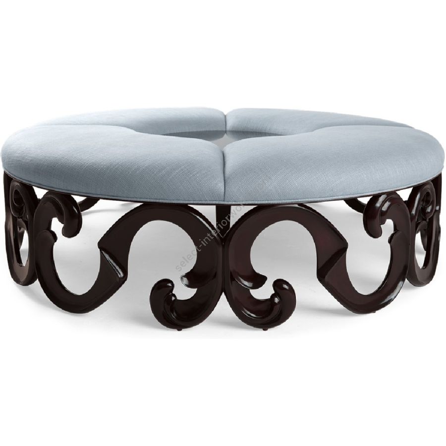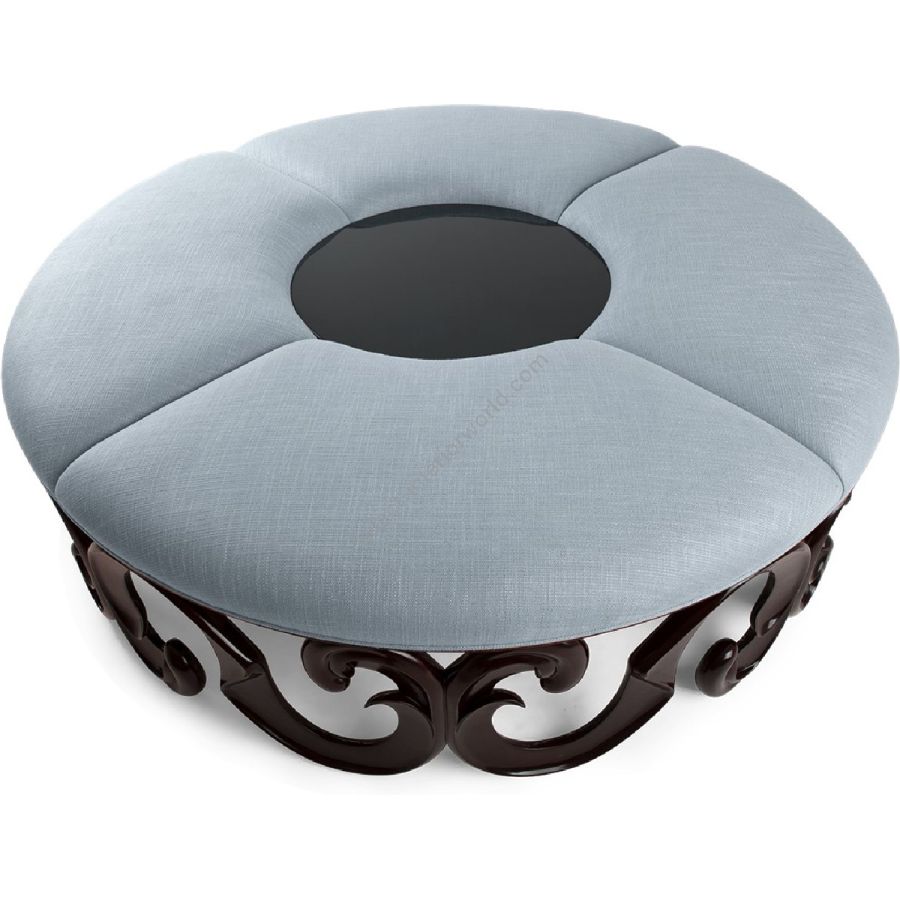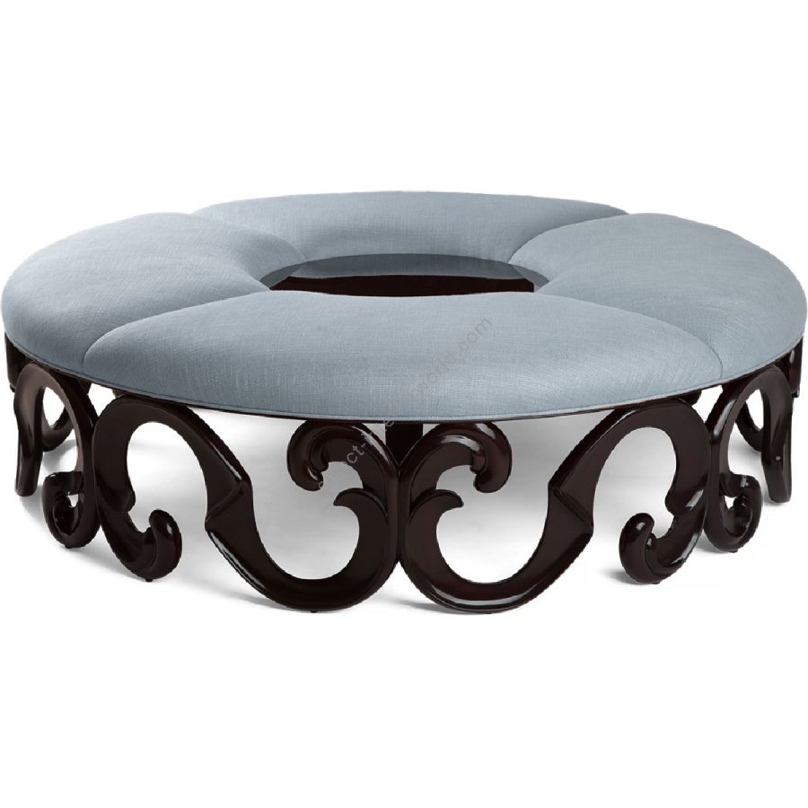 A stunning annular banquette with a masterfully hand carved base, designed to add splendor to a hallway lobby. The inner circle top can be used to display magazines, an array of flowers, plants or sculpture.