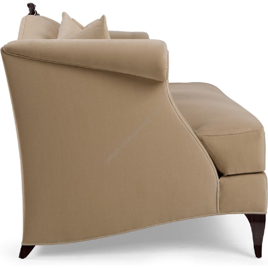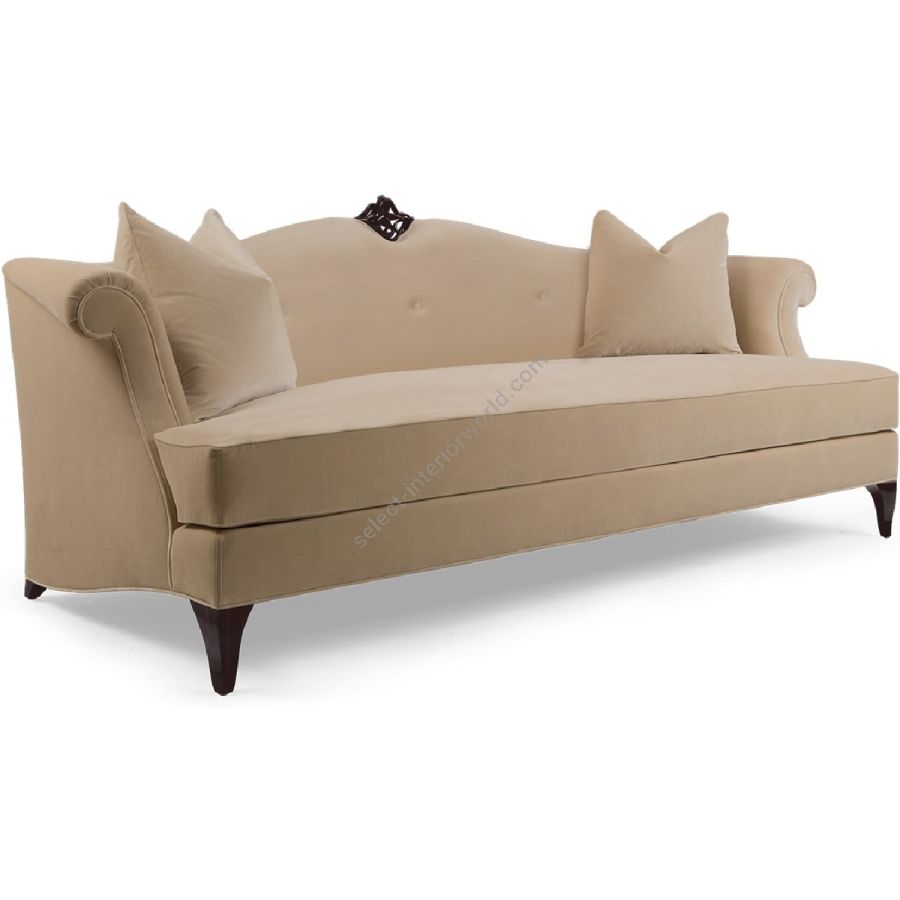 This impressive camel back sofa, whose curvaceous backrest includes an intricately carved central mount, exudes a timeless, contemporary look and feel. Available as a shorter version; 60-0201