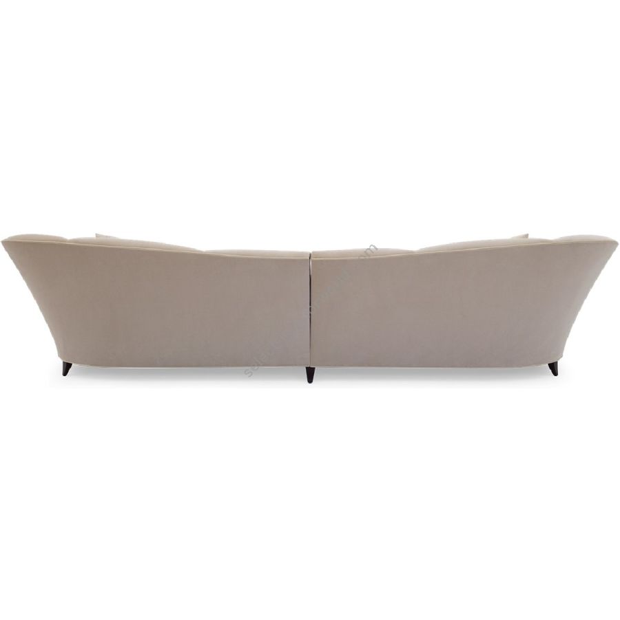 A stunning sectional and prestigious four-seater sofa defined by curves, carved scroll arms and scalloped back.