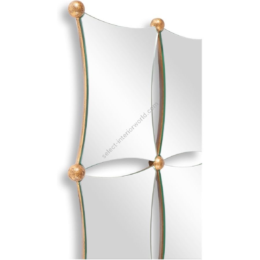 An exceptional design consisting of ten hand polished curved edge mirror panes adorned by eighteen gold carved bobbles.