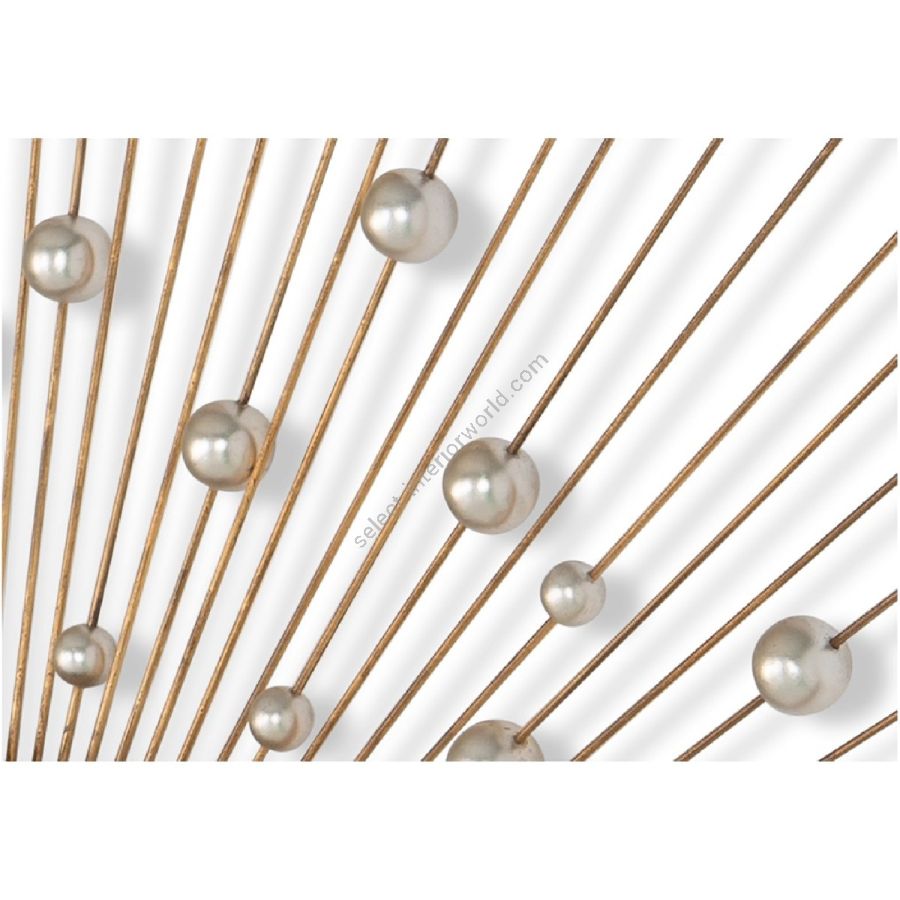 With an explosion of stainless steel spokes radiating out in an asymmetrical circle, punctuated with dozens of silvered bead accents and on a raised convex pane, this mirror frame is a spectacular statement piece.