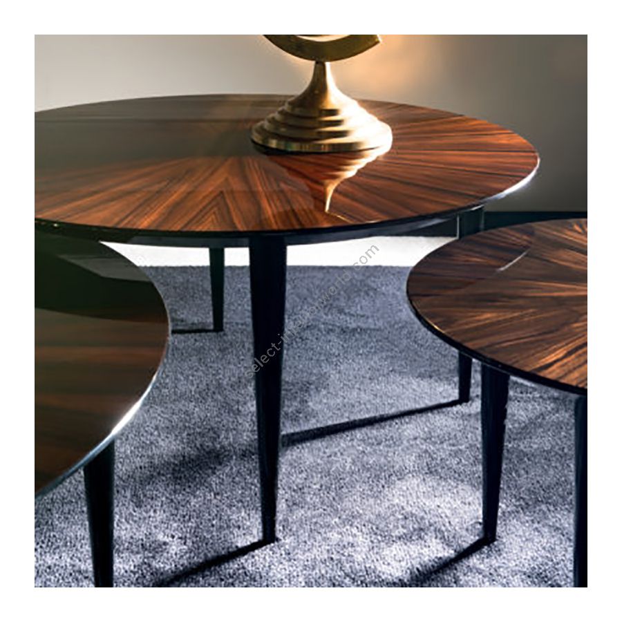 Its radial pattern veneer comes from an accurate technique that is rigorously executed by our best cabinetmakers. We are constantly focused on providing the best quality to the client.