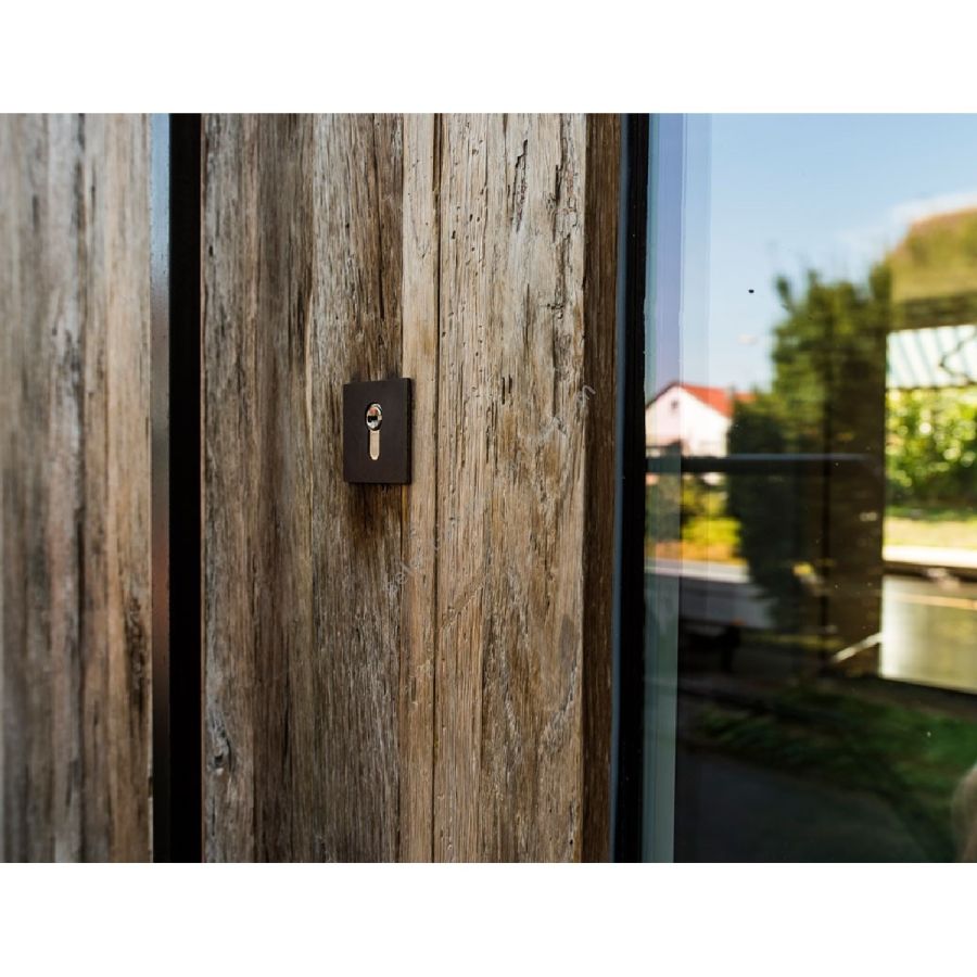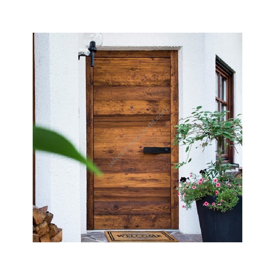 The Duotherm technology of our entry door systems allows this unique, natural material to be used as the cover surface of the entry door. The door leaf consists of individual boards which are precisely butted together for a real boardappearance. The door leaf edge made of solid material ensures a consistent highquality appearance. The combinations with black fittings or flush stepped glazing gives the door a more modern appearance.