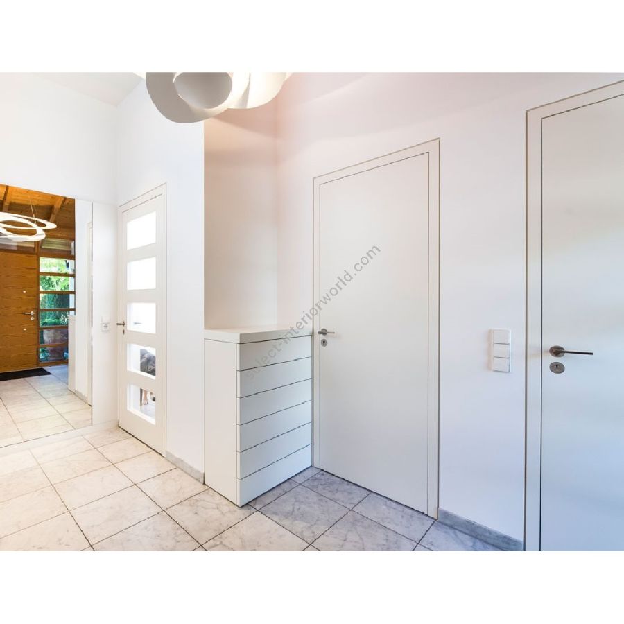 The wall-flush INTRA UZ door forms a flush unit of door, frame and wall by using the bottom frame and shadow gap. Depending on the installation situation, a distinction is made between the variant with aluminium profile (UZ-ALU) suitable for plastering and without (installation in plastered reveal).