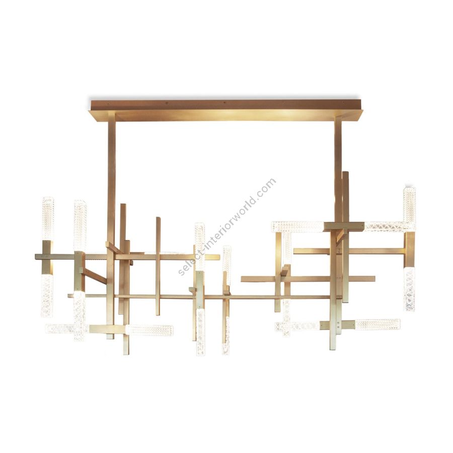 A collection of “jewel” lamps characterised by the combination of rectangular brass tubes and slanted cubes in engraved crystal, with two types of workmanship. The apparently random juxtaposition (hence the name “Mikado”) in fact follow a precise and balanced scheme. The LED sources, inserted in the tubes so as to showcase the preciousness of the crystal, make Mikado a high-performance decorative product that is compatible with home automation systems.