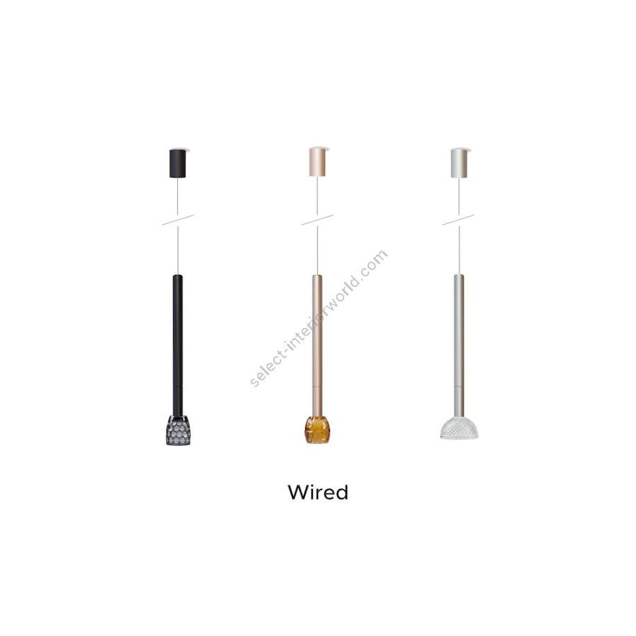 Tenebra is the first IP65 rechargeable battery suspension lamp of Contardi outdoor collection. Available in two different variants: Tenebra with spot light without diffuser and Tenebra Crystal with diffuser in 'synthetic crystal'. The synthetic crystal diffusers give colour and three-dimensionality to the light. Available in battery-powered or wired versions, the battery-powered version, with about 9 hour autonomy, can be recharged through a USB type-C port commonly used for latest-generation smartphones and tablets. Supplied with accessories and steel cable to be 'hooked' and installed in a wide variety of contexts, from a tree branch to a pergola arbour rather than an outdoor tent.