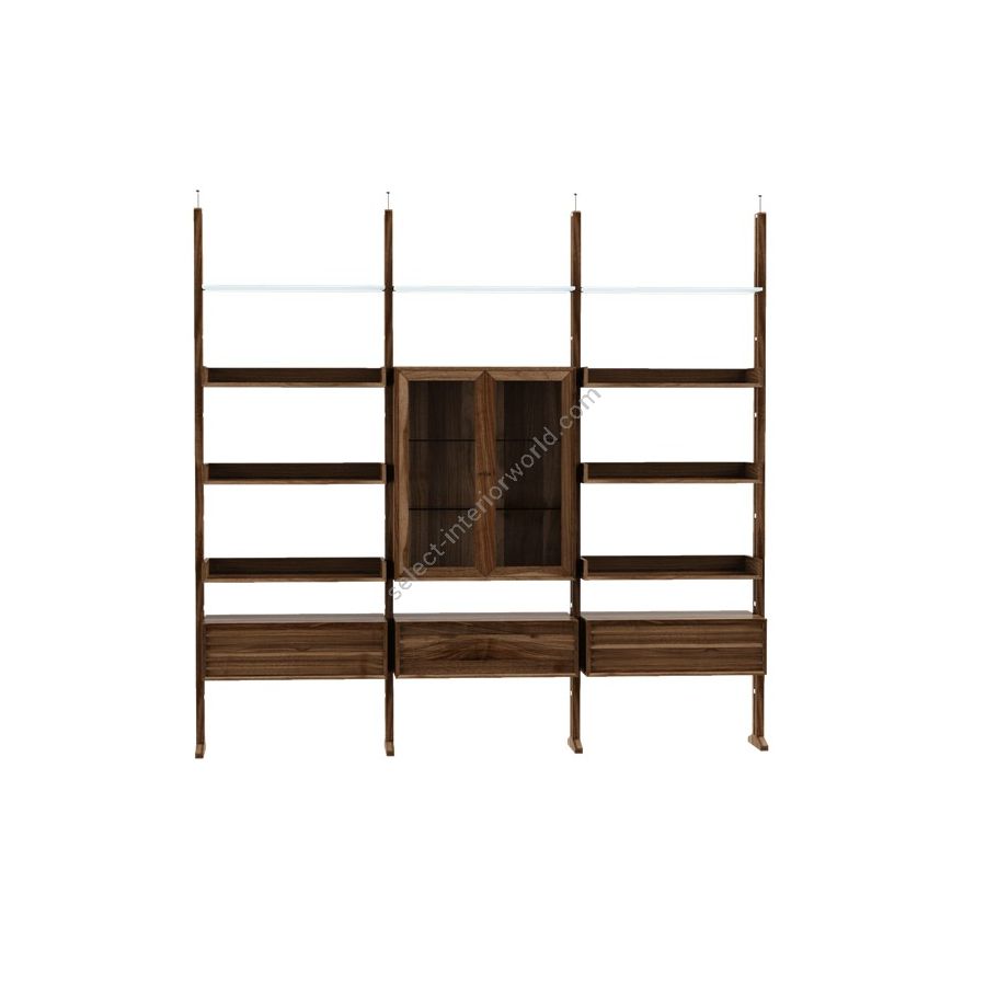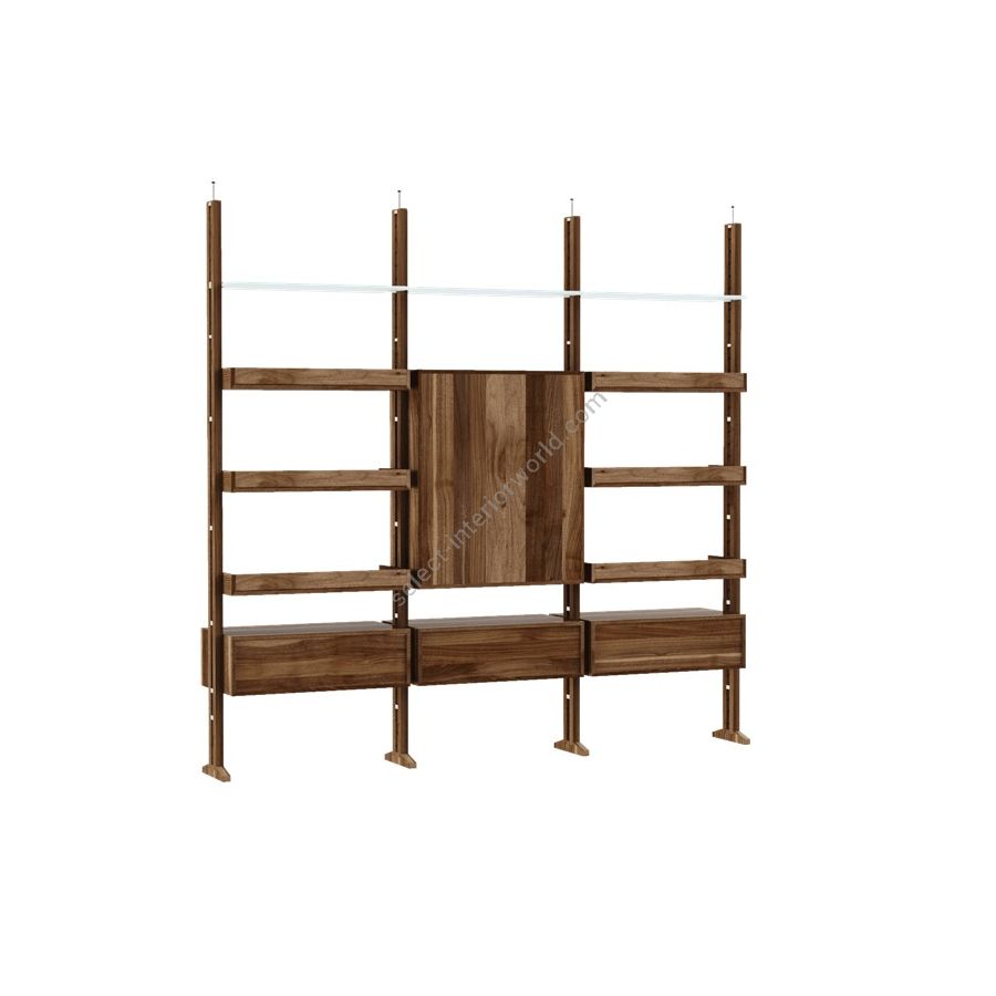 When refined and contemporary design meets the Italian craftsmanship tradition, a unique décor is created. The Dale Italia collection presents Elle, a wall bookcase equipped with containers and wooden or glass shelves. This solid wood piece of furniture in premium walnut enables maximum flexibility. It transforms into a partition wall finished on both sides and can change appearance according to the specific needs.