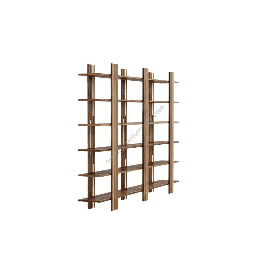 The Gravità solid wood bookcase is a simple and linear composition that conveys a feeling of suspension. It uses magnetic vertical elements to hide the joints of the support surfaces.