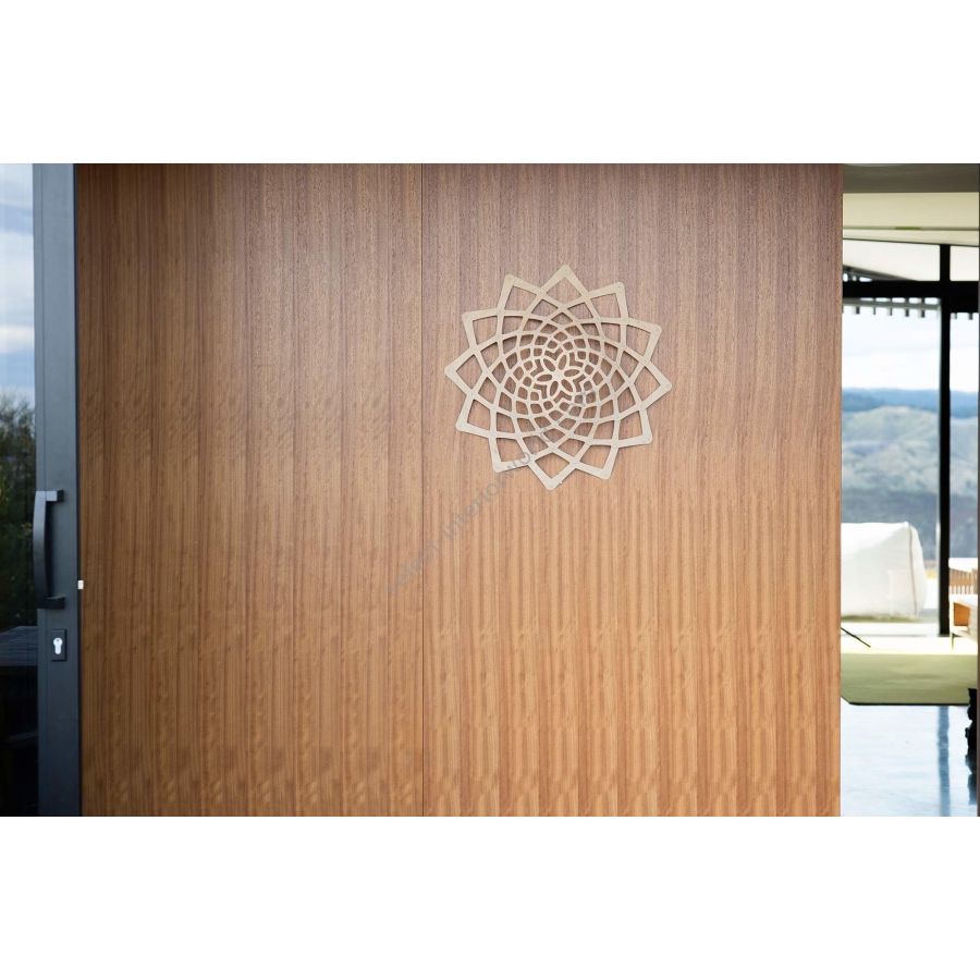 Sunflower is a wall shade that can be mounted over an existing wall sconce. It is a sculptural geometric form based on David’s inspection and love of the patterns found in nature and in this case, a Sunflower.