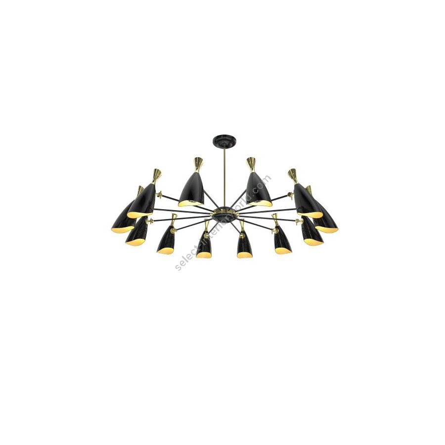 Duke Round is a modern pendant lighting design that boasts a heavy nostalgic 70s groove vibe. Inspired by the simplicity of the 1970s, DelightFULL’s designers were able to create an iconic modern ceiling light that suits the most demanding setting. Produced in Portugal, it is handmade in brass and aluminum. The body, made of brass, has both a matte black and a gold-plated finish, while the shades are lacquered a glossy black on the outside. The inside is matte white, but it can also have a gold powder paint finish. It is a stunning bedroom ceiling light, but this large ceiling light can also be considered for other settings, such as a mid-century modern living room.