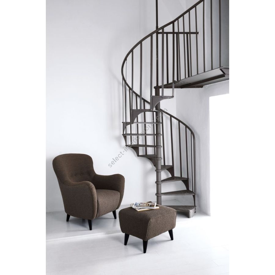 With its curved volumes and harmonious balance, between vintage charm and contemporary elegance, Marie armchair and Marie pouf exude retro-chic allure and invite to relax with a book or in good company. Sheltered by its thick seat, curved armrest, and tall, enveloping backrest with a tufted accent, our Marie armchair is the place to be to decompress.