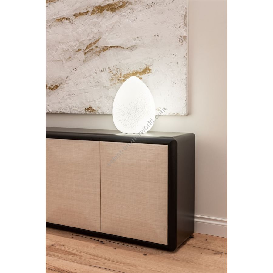 A signature piece of Collezione Riviera, Colorado features the precious shapes of pure and well-cut gems that smoothly contrast with the simplicity of the raffia doors’ configuration. The naturalness of the natural fiber and the matt lacquered frame and interiors, Colorado combines sophisticated workmanship with a contemporary design.
