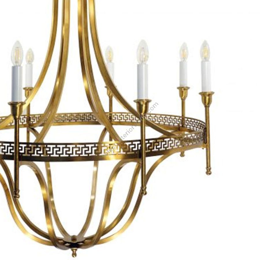 8-light brass chandelier in bronzed finish with laser-cut details.