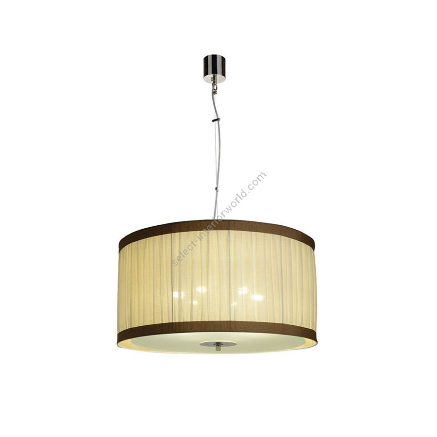 Ceiling lamp in brass chrome finish with glass diffuser. Lampshade in chiffon with decorative bands.