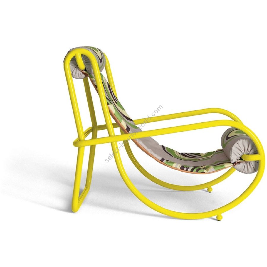 Designed by Gae Aulenti, the Locus Solus Armchair combines playful retro spirit with modern outdoor comfort. Two padded tubulars wrap the seat, while glossy painted steel enhances its bold silhouette. A unique re-edition that turns any space into a design statement.