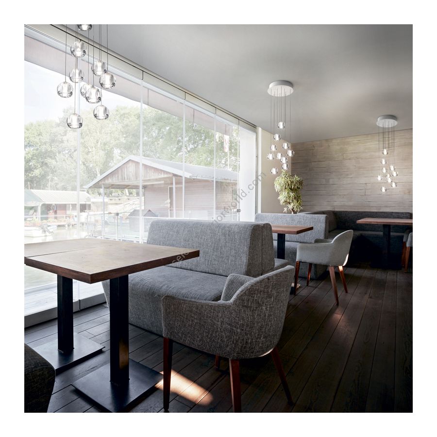 The Multispot Beluga pendant lamp offers a wide range of possibilities thanks to the ceiling roses of different shapes and sizes. The light fittings are different, depending on the type of ceiling rose, but can be customized to suit customer requirements. The lamp offers many different solutions and therefore fits perfectly into any environment.